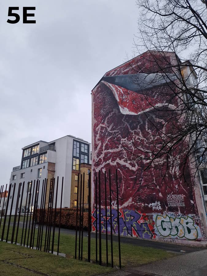 Pour notre cinquième scène, la photo de l’iPhone se distingue également. Elle est un peu plus chaude que les photos de la plupart des concurrents, et surtout, le bâtiment avec l’image de la viande est nettement plus exposé. J’aime ce rendu, et apparemment vous aussi!