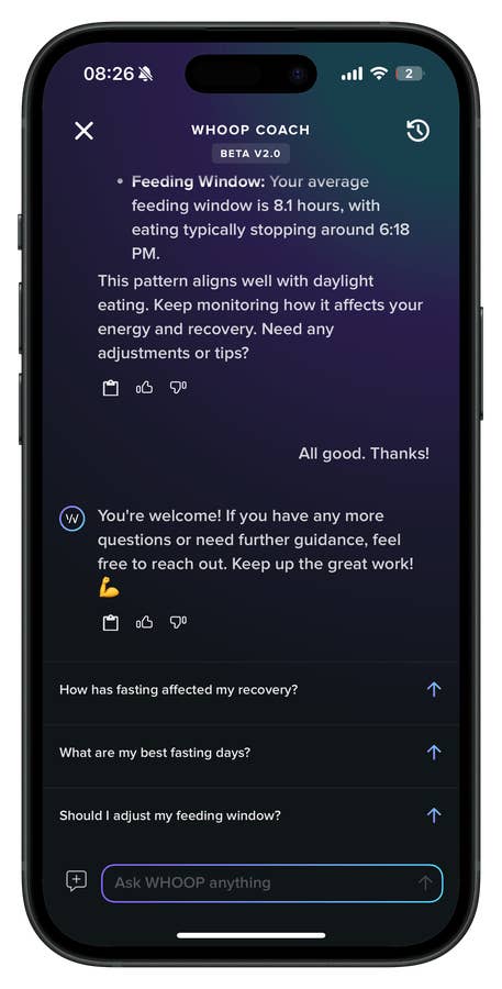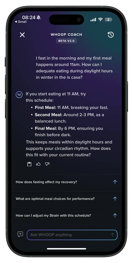 Par exemple, mon coach IA propose des conseils pratiques adaptés à mes habitudes, comme l’optimisation des heures de repas et de l’hydratation en fonction de mes données de jeûne et de récupération. Par le passé, ce type de coaching personnalisé nécessitait des heures de recherche et d’expertise. Aujourd’hui, grâce à l’IA, je peux y accéder en quelques secondes.