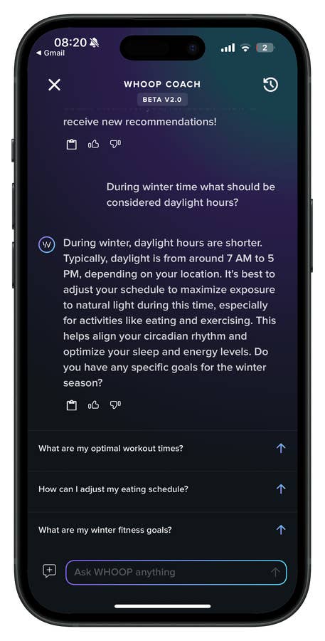 Prenez l’exemple de mon expérience avec le Whoop 4.0 (test). Ce qui n’était au départ qu’un simple appareil de suivi des mesures s’est transformé en un coach IA qui déchiffre les données et fournit des informations en temps réel ainsi que des stratégies de santé à long terme. Mon coach IA Whoop m’alerte lorsque j’ai besoin de plus de temps de récupération et m’aide à modifier mon comportement pour améliorer mes performances. Plus il recueille de données, plus ses conseils deviennent pointus et personnalisés- une aubaine pour les utilisateurs assidus.