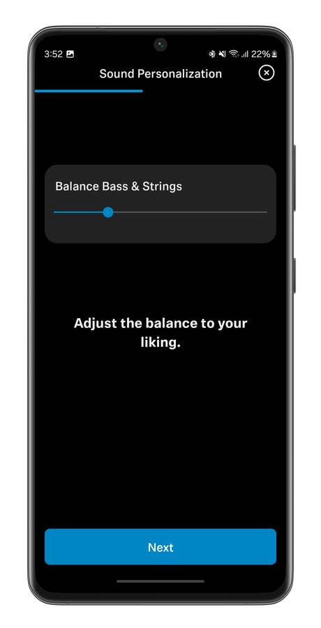 En revanche, vous pouvez tester la fonctionnalité Sound Personalization. Il faut disposer d’un compte Sennheiser dans l’application Smart Control. Voyez cette fonction comme un égaliseur amélioré. Sennheiser va vous jouer un morceau dans le casque. Vous allez pouvoir moduler le volume de certains types de sons. Je ne parle pas que de plages fréquentielles comme dans un égaliseur. Non, ici, vous pouvez choisir de mettre en exergue les basses, les cordes tout en gérant l’équilibre entre ces différentes parties du morceau.