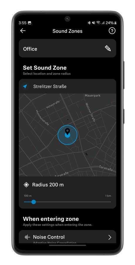 Enfin, je glisse un mot sur la fonction Sound Zones. Vous pouvez créer des préréglages de la réduction de bruit dans un périmètre précis, du genre au bureau. Et le casque changera automatiquement son comportement selon que vous entrez dans cette zone ou que vous la quittez. Personnellement, j’ai défini un périmètre de 200 mètres autour de mon bureau.