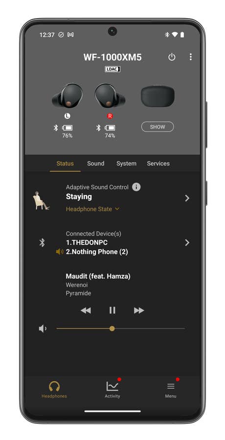 Si vous voulez des fonctionnalités, bidouiller dans d’innombrables réglages, les Sony WF-1000XM5 sont faits pour vous. Déjà, l’essentiel de ce que je considère comme des fonctionnalités indispensables est là. Détection de port, mise en pause/veille automatique, multipoint.