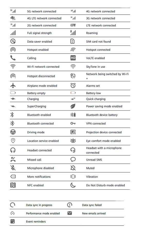 Les icônes de notification et d’état les plus courantes selon les fabricants